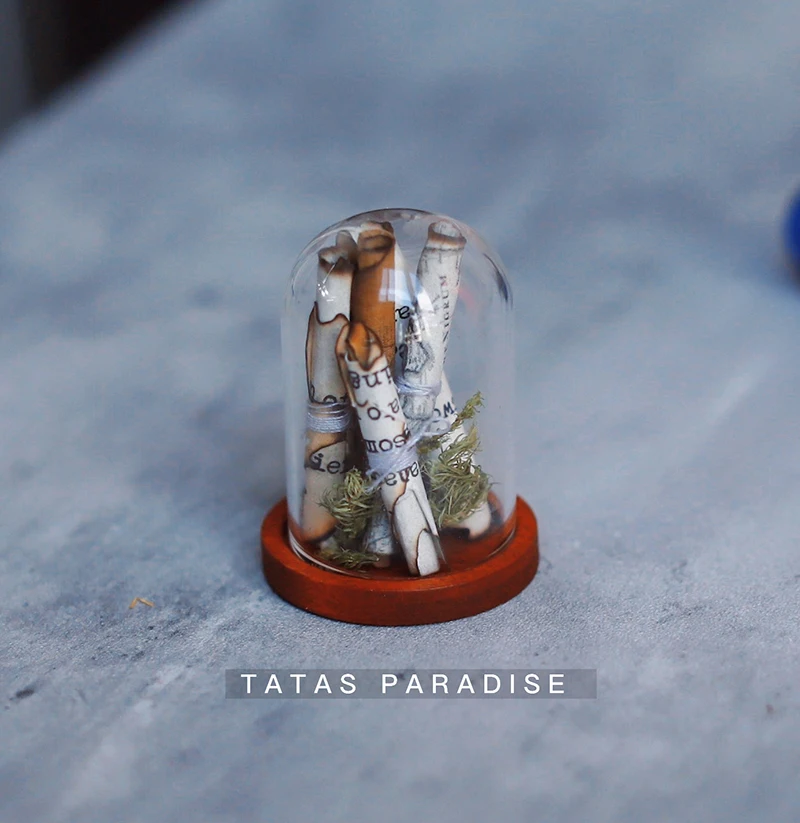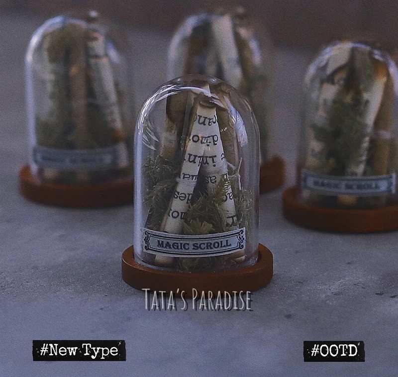 Mo METHOD ROOM DRAGON TAIL GRASS SCROLL BOTTLE –> THIS SECTION CONTAINS 6 small SIZE SCROLLS, and a small amount OF DRAGON TAIL grass DECORATIVE, BOTTLE mouth has been fixed with the bottom of the maHOGany base, DO not OPEN!! Full height about 4 cm!!