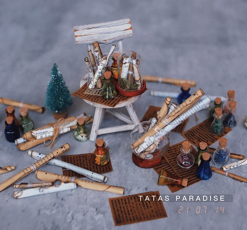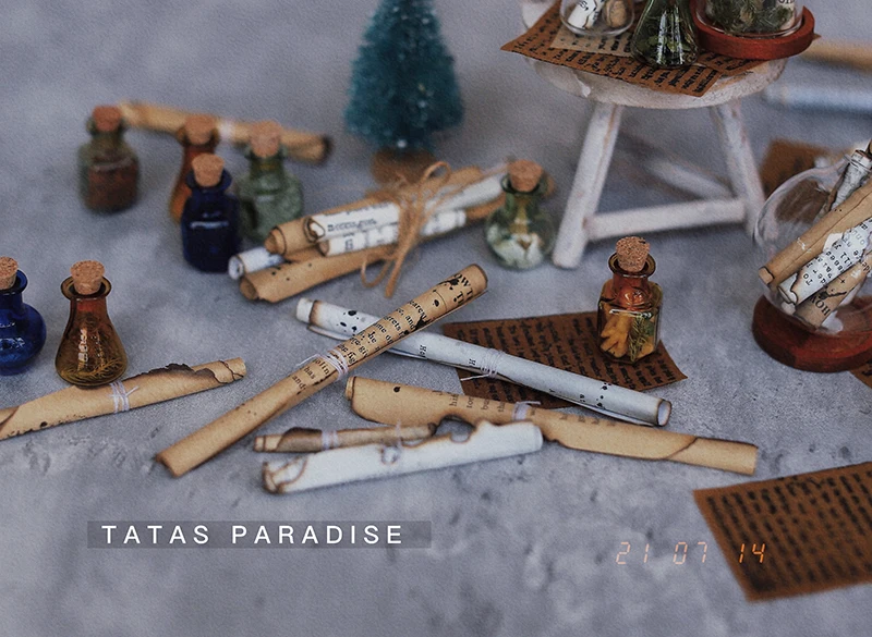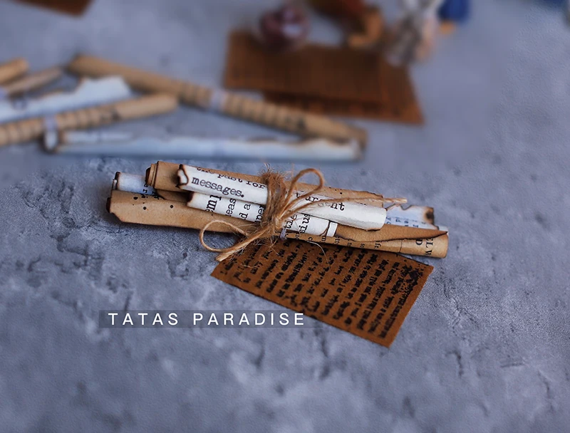 A STRING OF VINTAGE SCROLLS FIXED WITH TWINE (5 IN)– > THIS SECTION can also be sent to scrap paper, send a HA. It contains 5 scrolls (small scroll X1, large scroll X2, large scroll X2), which are easily fixed with twine, and can be unwrapped and held by children alone, or the whole bundle can be held by children, all of which are very magician’s feet. Please see the description of the scroll in the top section for the size of the scroll