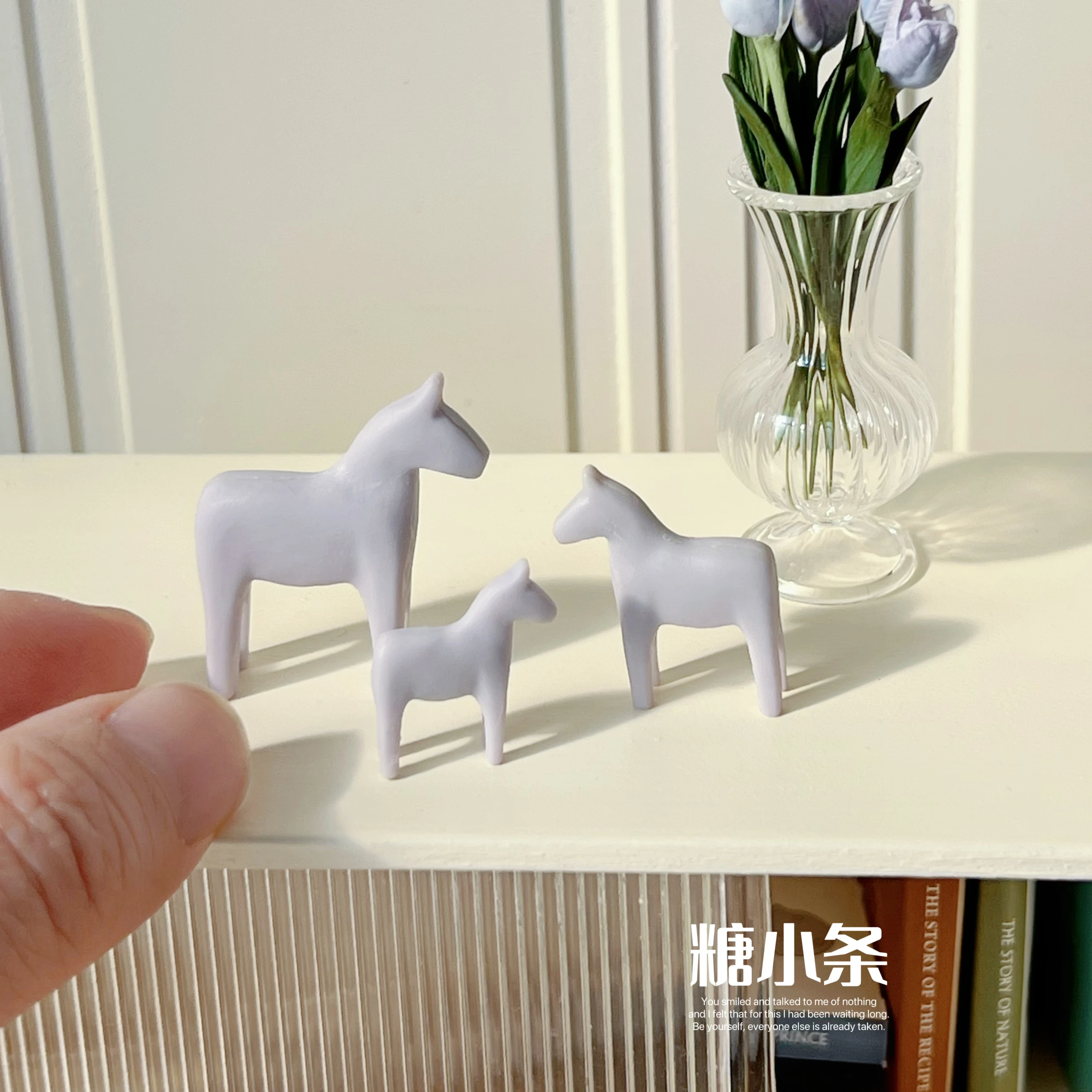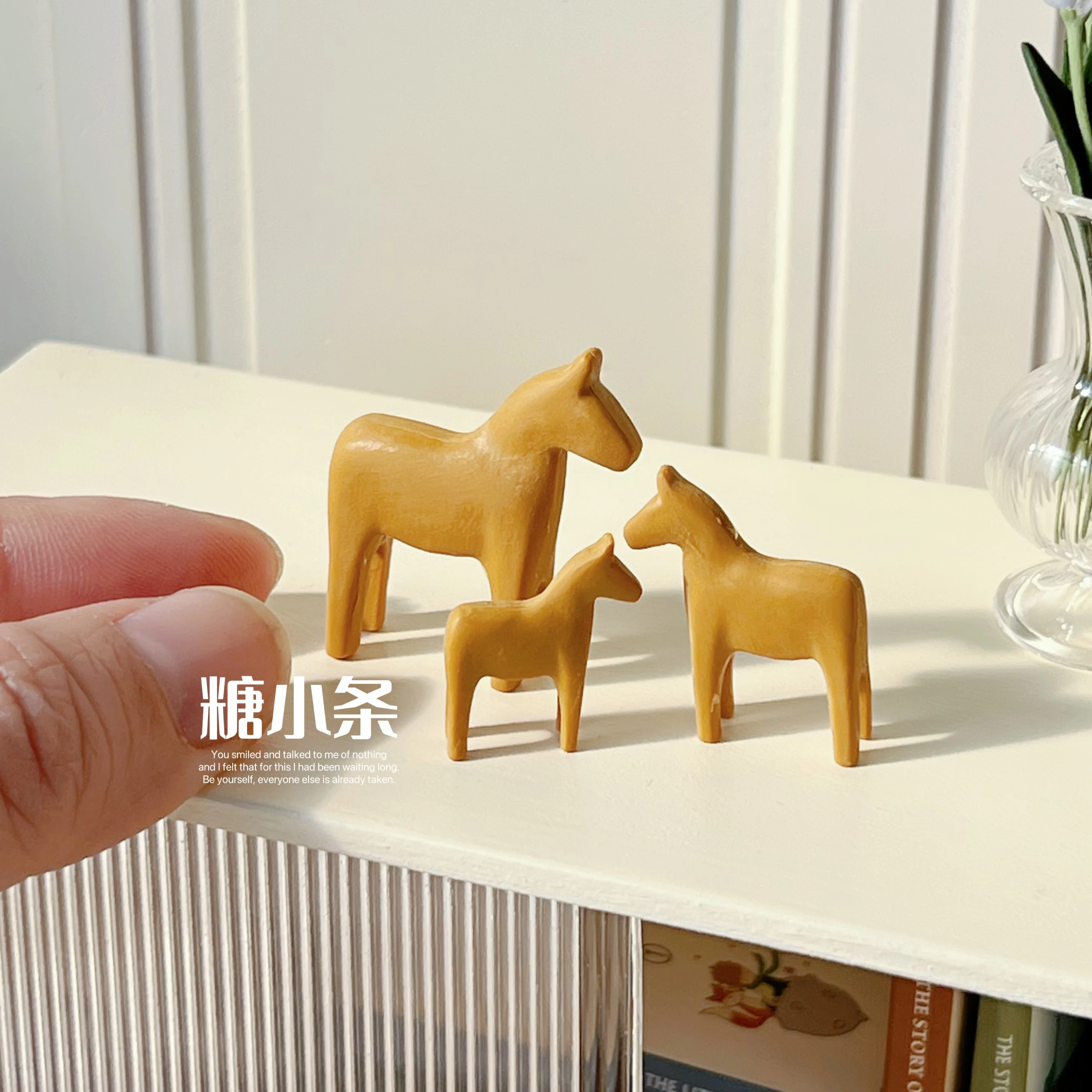 These miniature simplistic horses will work nicely as miniature statuettes in a dollhouse or diorama.