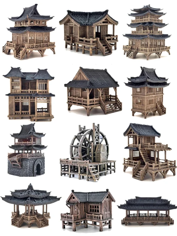 Miniature Micro Landscape Decoration Fish Tank Bonsai Decorative Desktop Rockery Pavilion Antique Architectural Home Decoration